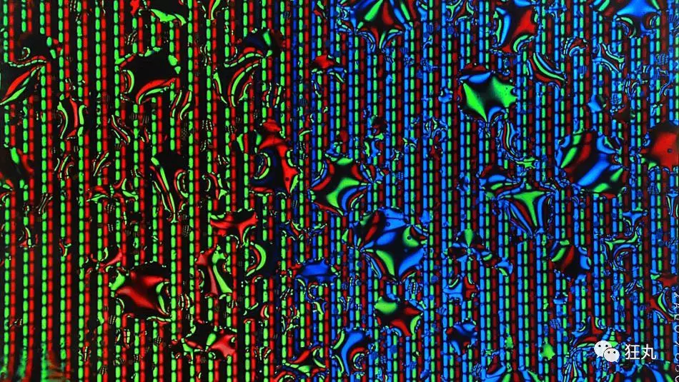 放慢380000倍看电视, 才发现自己原来被骗了这么多年 这些密集的红色、绿色和蓝色方块被用作“子像素”,